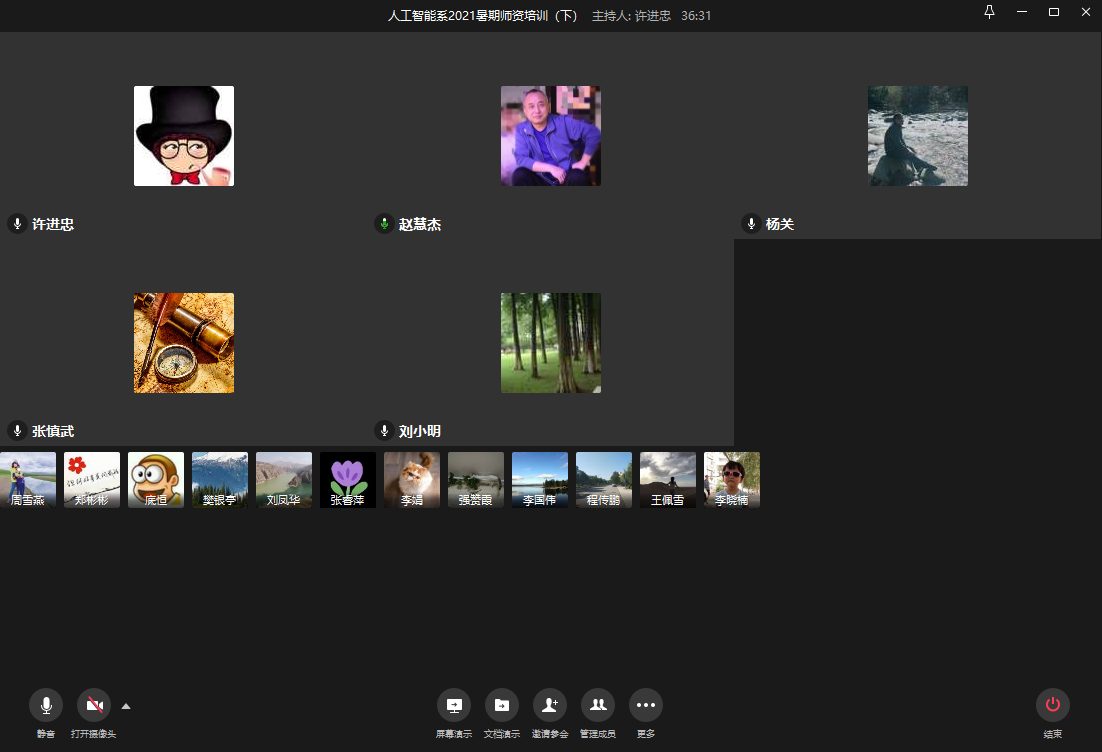 2021年暑期郑州疫情再次爆发,暑假申请的线下师资培训都无法参加,肆虐的疫情也无法阻挡教师们参加师资培训,人工智能系教师积极参与各类线上师资培训。为了提升人工智能专业课程教学能力,人工智能系也在8月26日通过企业微信会议,举行了内部线上师资培训。YABO鸭脖官网杨关副院长和王佩雪副院长也参加了培训会,杨关副院长还作为师资培训主讲人分享了人工智能数学教学经验。