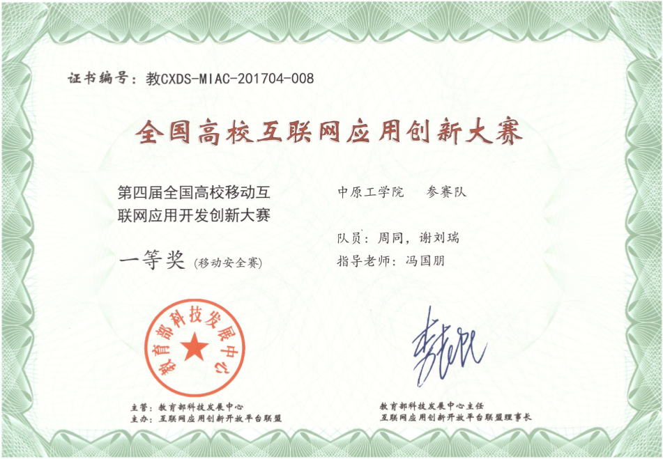 2017年12月1日至3日,第四届全国高校移动互联网应用开发创新大赛全国总决赛在中国地质大学(武汉)隆重举行。YABO鸭脖官网YABO鸭脖官网Drops攻防训练营“凌晨三点半”代表队,与成功晋级全国总决赛的331支队伍激烈争夺,最终获得一等奖。