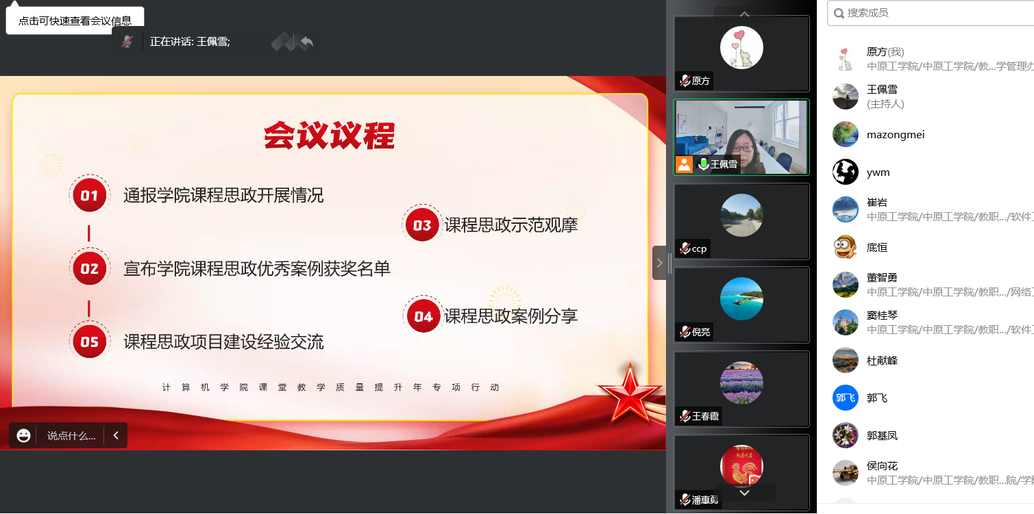 2022年10月25日,我院组织召开了YABO鸭脖官网课程思政经验线上交流会。我院全体教师参加了会议,会议由副院长王佩雪主持。