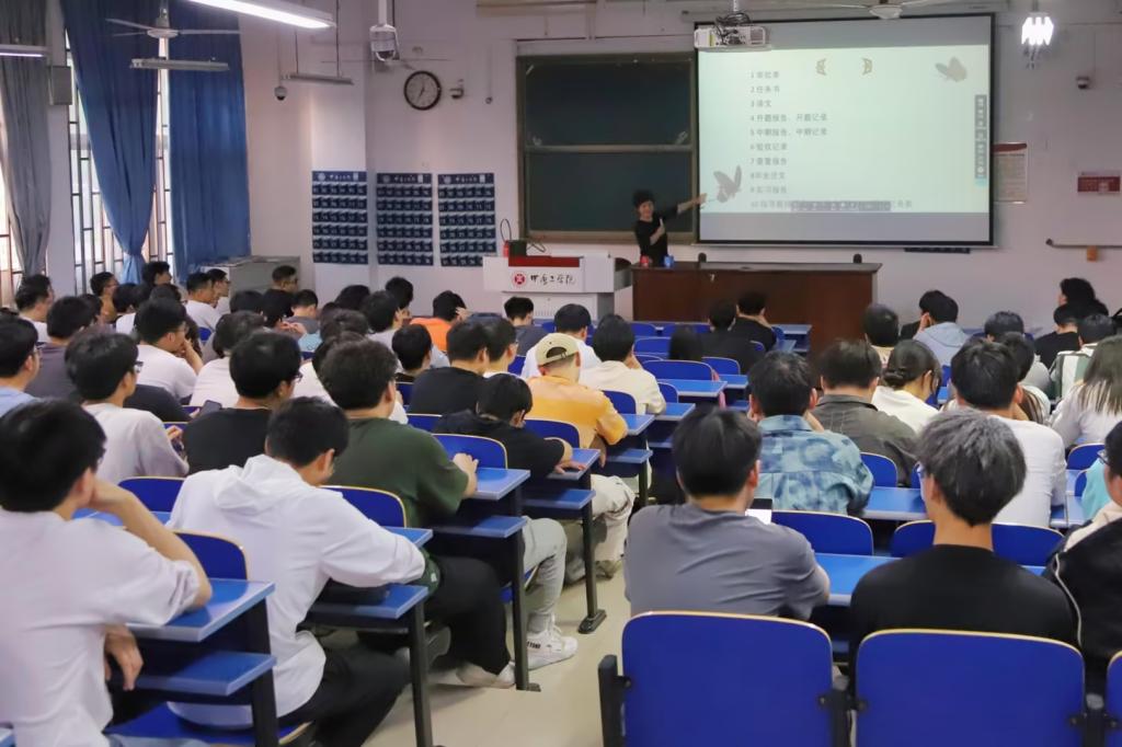 刘教授从毕业设计论文查重、论文撰写以及答辩流程等方面进行了全面介绍,并详细讲解了毕业设计相关文档及毕业论文撰写要求与规范,列举出论文中常见的错误,特别强调了论文作假行为的处理办法。刘教授结合学院实际及自己多年毕业设计指导经验,分享了心得体会和感悟,并现场解答了同学们的疑问与困惑。