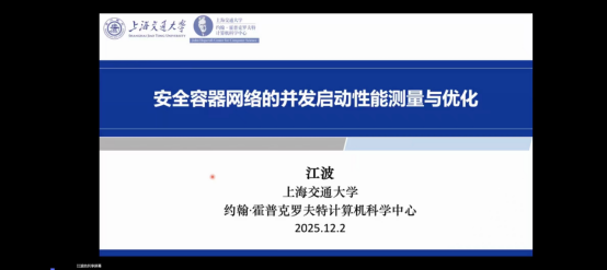 报告内容深入浅出、逻辑严谨,不仅展示了科研团队在系统优化方面的技术深度,也为云计算与网络安全的融合发展提供了有益参考。在提问互动环节,师生们就Kubernetes与安全容器之间的集成关系、调度策略对性能的进一步影响及操作系统设计理念的延伸应用等话题展开热烈讨论,江教授一一作出详尽回应,进一步激发了现场学术思维与研究兴趣。