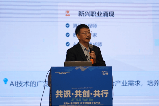 郝兴伟作题为“人工智能通识教育:问题与挑战”大会报告,深入剖析人工智能通识教育面临的五大核心问题:“为何讲、讲什么、怎么讲、谁来讲、可持续”,并提出明确教育目标、分层次课程设计、创新教学方法、提升师资能力及构建智慧平台等系统性解决策略。