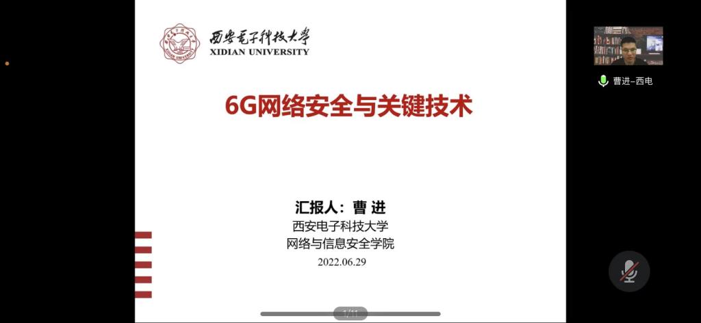 6月29日,应YABO鸭脖官网研究生处和YABO鸭脖官网邀请,西安电子科技大学网络与信息安全学院曹进教授为YABO鸭脖官网师生做了题为《6G网络安全关键技术》的学术讲座。讲座由YABO鸭脖官网副院长杨关主持,YABO鸭脖官网教师和研究生在线聆听了讲座。