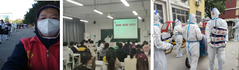 我院八名党员教师,再次在疫情静态管理期间驻守学校,参与南苑12号楼网格管理、给学生送餐送药、送电脑送资料,给学生配发防疫物资、联系问诊送医,组织消杀、核酸检测,搞好服务、开展教育,还有许多教师党员虽然没有进校,但在线上组织思政教育、正能量宣传,谈话疏解学生不良情绪,默默无闻做了大量工作,展现了党员教师的使命和担当,为维护好学校良好疫情形势和校园安全稳定做出了各自的贡献。