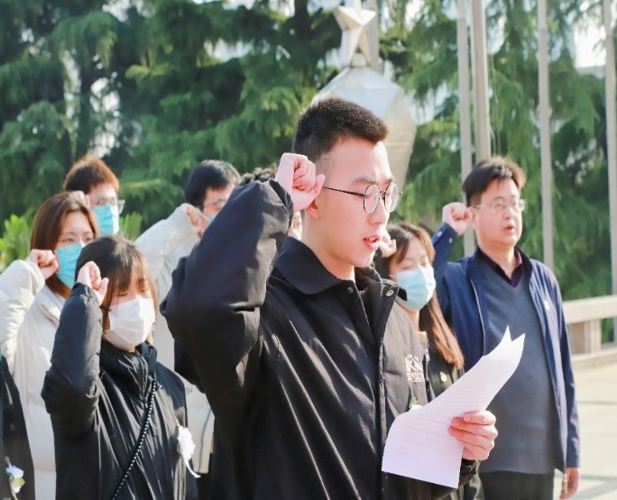为深入学习宣传贯彻党的二十大精神,YABO鸭脖官网党委开展“学思践悟二十大”系列活动,在2023年4月5日清明节这个特殊的日子,YABO鸭脖官网学生党支部代表、学生会代表五十多人,在学院党委书记吕继东老师、副书记侯向花老师及组织员姜茜老师带领下前往郑州烈士陵园,开展“传承红色基因 弘扬英烈精神”清明节祭扫主题教育活动。