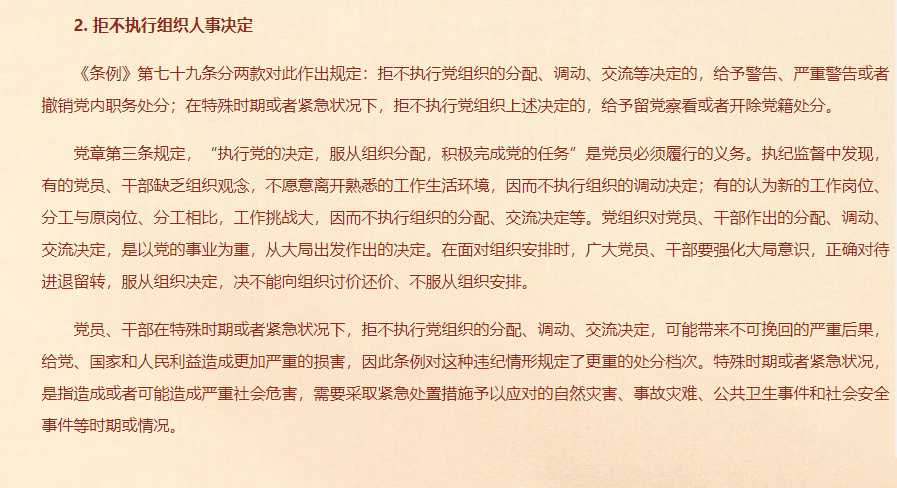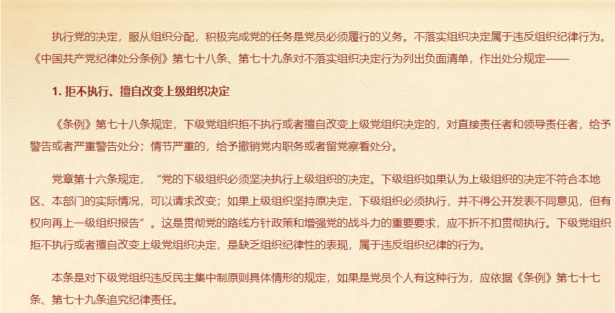 对不落实组织决定行为的处分规定