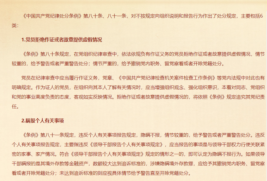 这些情况,如果不按规定向组织说明和报告将被处分