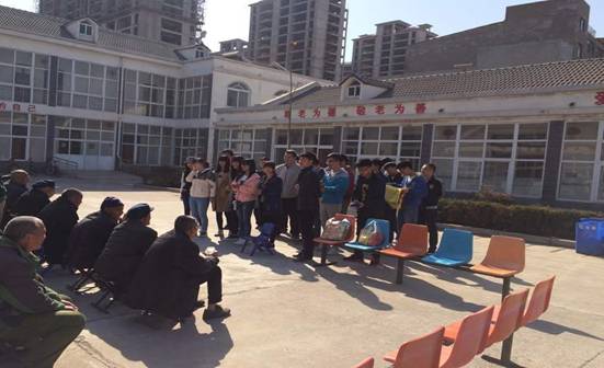 团支部成员为老人们送上了水果,牛奶等慰问品;活动中,陈辉为老人唱歌,赢得老人们的称赞,使气氛活跃起来。之后,在陪老人聊天的过程中,他们逐步地了解老人的衣食住行,这些关乎老人生活质量的问题。在他们的带动下,一些老人还表演了口琴,快板等节目,其乐融融。