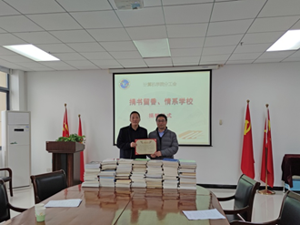 捐书活动开展之后,于2020年11月30日下午3点举行了“捐书留香、情系学校”捐赠仪式,由图书馆馆长向YABO鸭脖官网院长颁发了捐赠证书,会上双方并就数字图书资源的共享建设等问题进行了深入交流,会后并对学院的资料室建设工作指导。出席该仪式的有YABO鸭脖官网图书馆馆长、副馆长、采编部主任和YABO鸭脖官网党政工会领导及部分教师代表。(通讯员:杨要科)