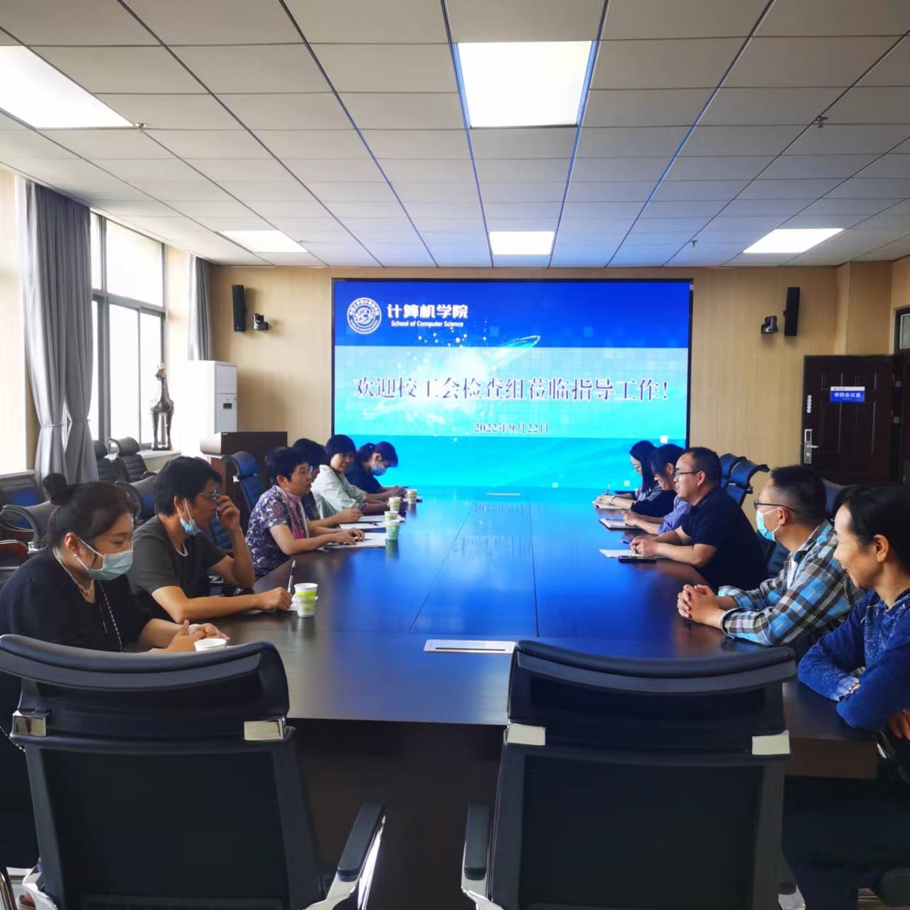 2022年9月22日下午,校工会检查组一行在工会副主席岳瑞凤的带领下对YABO鸭脖官网分工会进行了“教工小家”实地考查评比并开展工作调研。学院领导班子及工会干部参加了座谈。