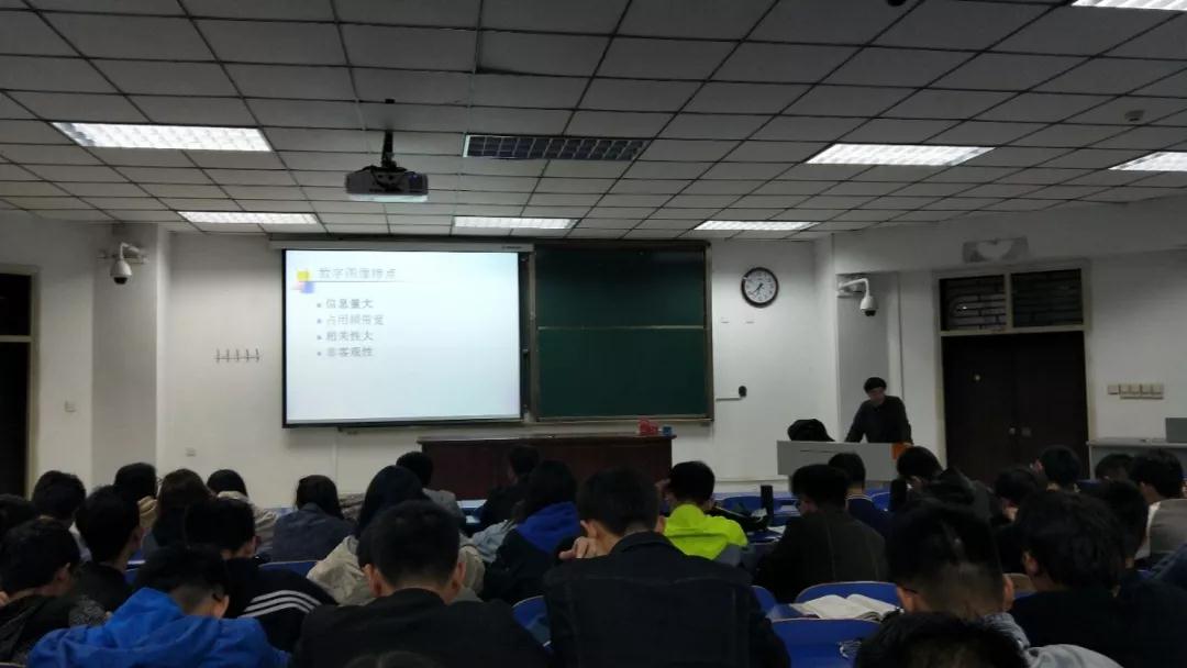 首先郭清宇教授希望大家掌握好大学的基础课,学会学习,这是大学的首要目标。接着就图像处理技术的三个层次:推广应用、工程开发、理论研究进行讲解。指出数字图像处理与数字计算机发展紧密相连,数字图像的起源可追溯到20世纪20年代,最早被应用到报纸业。在遥感遥测、气象云图、生物医学工程、航空航天、人工智能方面都有重要应用。郭清宇教授总结数字图像的四个特点:信息量大、占用频带宽、相关性大、非客观性。在讲座的互动环节,有同学提出模拟驾驶、医学人体方面的问题,郭清宇教授耐心解答。最后郭清宇教授希望同学们能够把目标放得更长远,在专业基础较扎实的情况下,鼓励同学们出国留学开眼界。