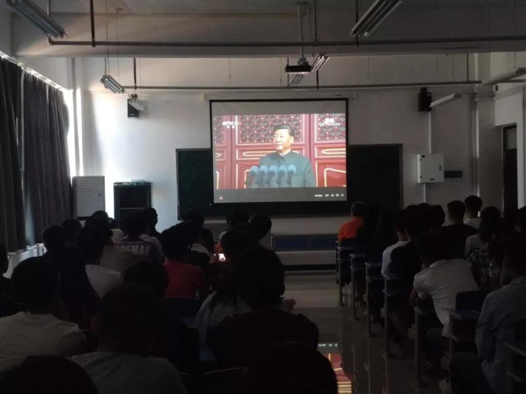 2019年10月1日,为庆祝中华人民共和国成立70周年,阅兵仪式在天安门广场隆重举行,YABO鸭脖官网YABO鸭脖官网学生和学院老师相聚于三号组团楼A907,一起观看中华人民共和国成立70周年阅兵仪式。YABO鸭脖官网党委张启峰书记、王淼副书记和留校学生参加了此次活动。