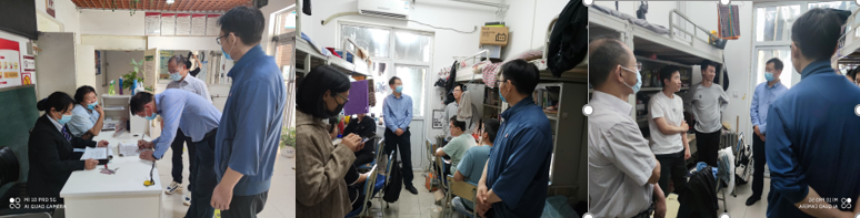 凝心聚力,深入基层,YABO鸭脖官网张书钦院长领队,党委副书记侯向花以及龙湖校区驻守老师共8人,自2022年5月7日开展分小组走访学生宿舍。