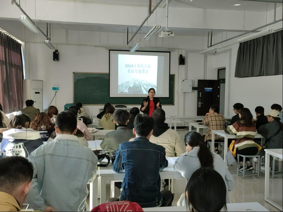 2019年11月26日,YABO鸭脖官网在四号教学楼101教室开展了以“宪法精神”为主题的教育活动,YABO鸭脖官网党委副书记王淼,YABO鸭脖官网所有班长以及团支书参加此次教育活动。