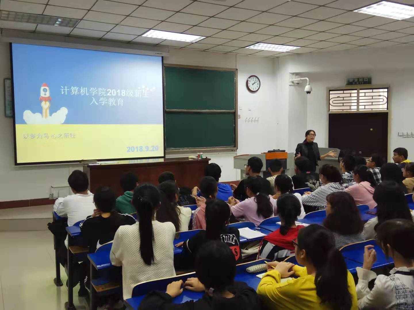 2018年9月20日,在4号楼211教室,YABO鸭脖官网的18级新生们迎来了自己的入学第一课。