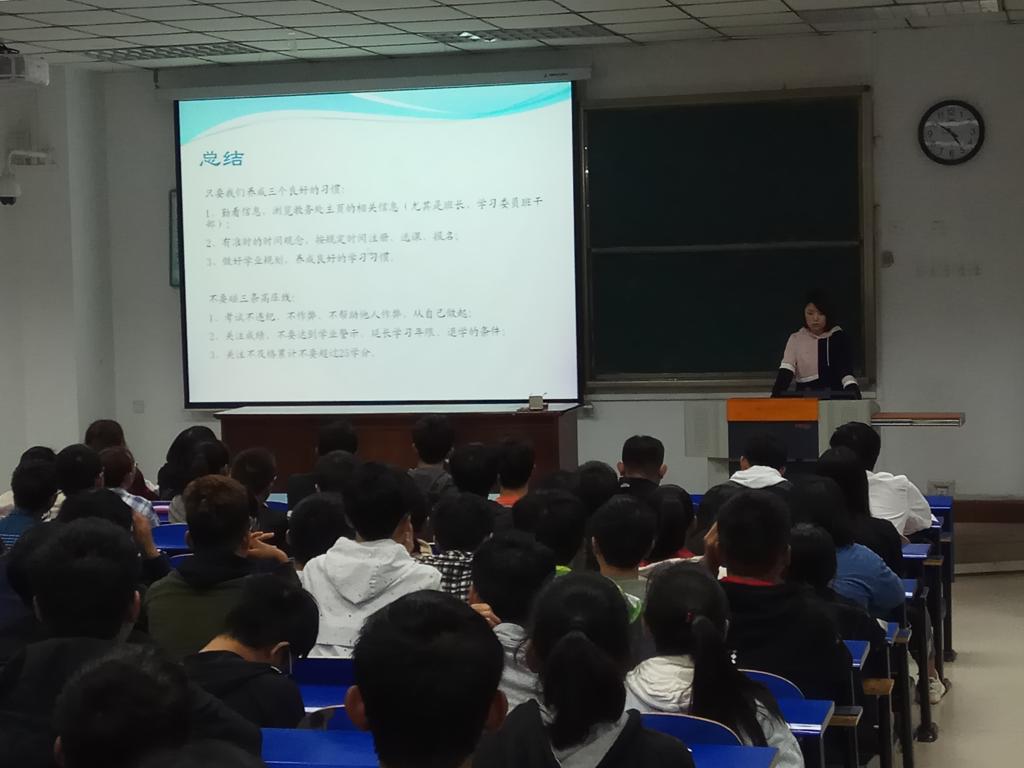 2018年9月25日在4号楼101,教学办原方老师为YABO鸭脖官网18级新生普及了选课以及学籍教育的知识。