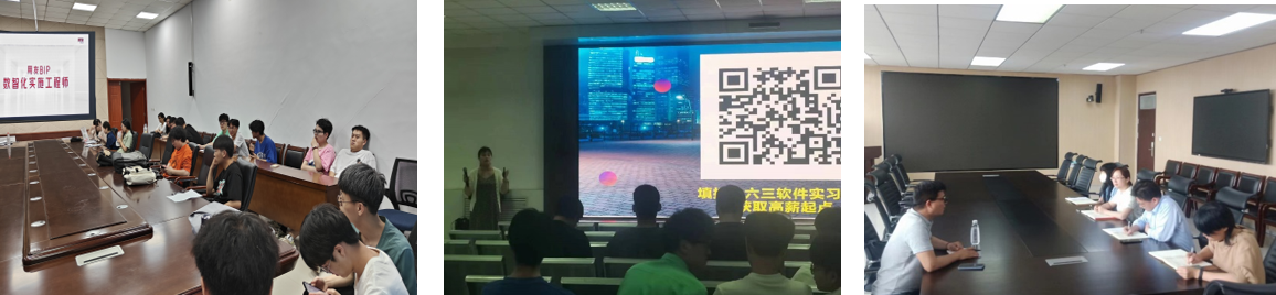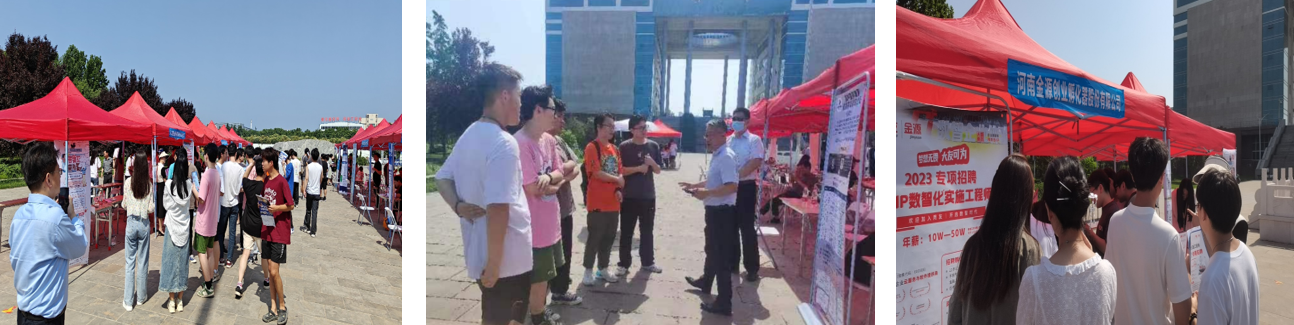 为更好地做好2024届毕业生就业指导工作,除现场招聘外,另为河南金源创业孵化器股份有限公司等多家企业在镇泰楼109、101、214安排了专场宣讲,学院五十多名学生和用人单位进行了面对面对接交流。同时,学院相关领导、辅导员,同八六三、卓悦智汇通信技术有限公司等企业,就人才招聘需求、校内外联合培养、实习就业考证等进行了座谈。