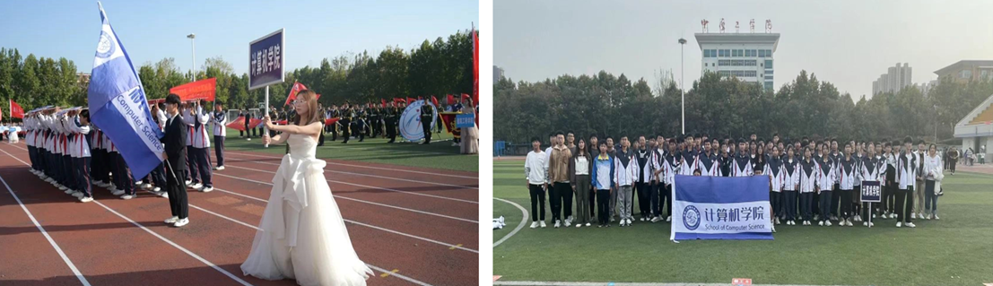 各学院方阵依次列队走过主席台,我院的方阵突出计算机特色,各位同学将手中的方牌举过头顶,整个方阵形成了一个键盘,随着按键的敲击、程序的输入,“砥砺奋进新征程,共赴中工新时代”输出并显示在操场为背景的大“显示屏”上。接着方队切换队形,YABO鸭脖官网校徽、我院院徽及校训“博学弘德自强不息”呈现在观众眼前,YABO鸭脖官网师生将在学校党委的正确领导下,在YABO鸭脖官网决战决胜河南电子科技大学的新征程上再创佳绩。