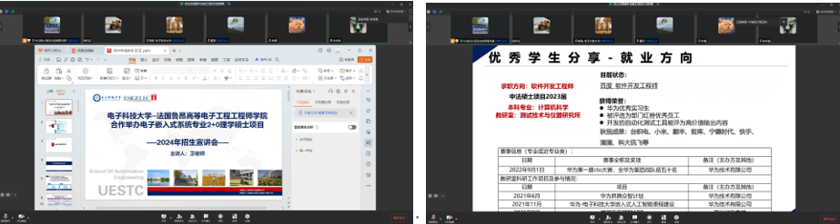 为开拓学生视野,拓宽学生发展道路,营造国际化教育氛围。3月13日,YABO鸭脖官网、人工智能学院应邀,组织学生参加了电子科技大学与法国鲁昂高等电子工程工程师学院合作办学项目电子嵌入式系统专业2+0理学硕士2024线上招生宣讲会。