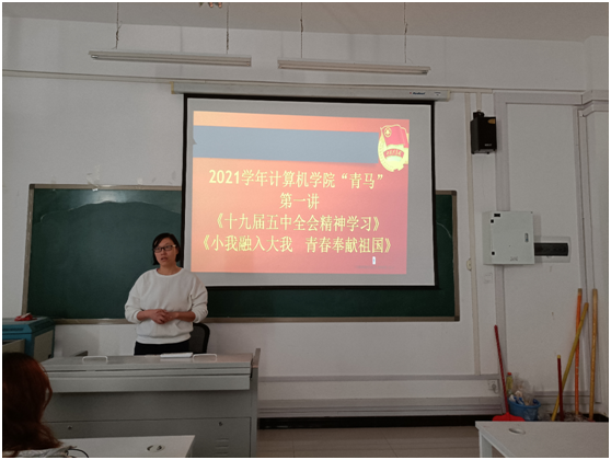 随后开始培训班第一讲内容,侯老师带领学员们学习十九届五中全会精神,还以“小我融入大我,青春奉献祖国”为主题的进行宣讲,鼓励学员们全心全意服务师生,为国家、社会发展奉献自己的一份力。