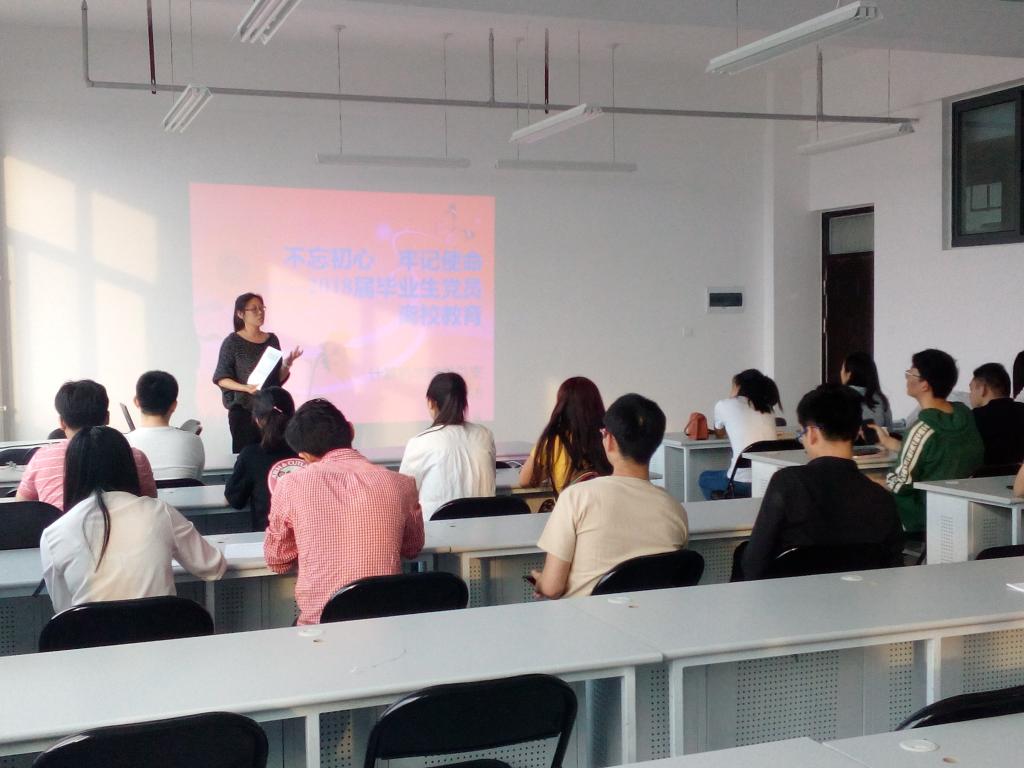 为了进一步贯彻十九大精神,加强对毕业生党员的教育工作,发挥共产党员在毕业生离校过程中的先锋模范作用,2018年5月8日晚六点,YABO鸭脖官网在3组团A904教室为即将走上社会的2018届毕业生党员举行了毕业生党员教育大会。