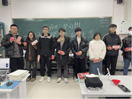 大三的学生党员为每位考研学子送上了精心准备的礼物:橙子、旺仔牛奶、精美的考试文具,当然还有亲手写就的祝福贺卡。这些礼物不仅代表着党支部对考生们的祝福,更是对他们奋斗目标的实际支持,让学生们感受到了党组织的关怀和温暖。旺仔牛奶寓意着健康和能量,希望学生们在考研复习期间保持身体健康、精力充沛,气运满溢,一旺到底;橙子则寓意着对考研学子的期望和祝福,希望他们一战“橙”硕,心想事“橙”。