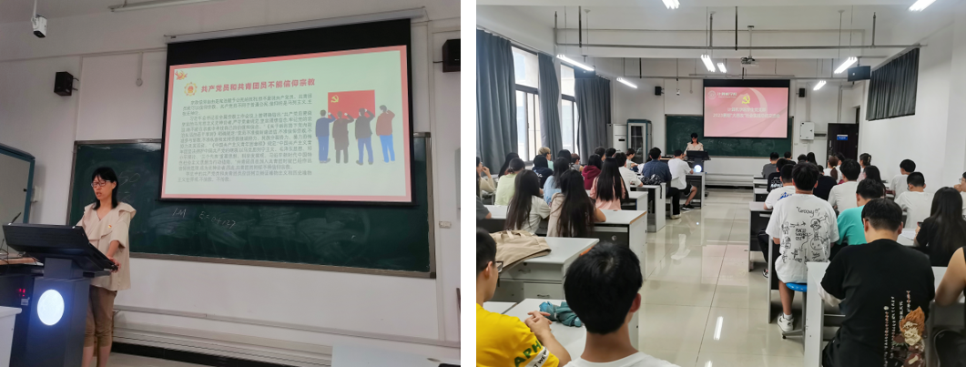 为帮助学生树立马克思主义宗教观,强化学生党员抵御和防范校园宗教渗透的意识,维护校园安全与稳定,2023年9月12日,YABO鸭脖官网在学生党支部中开展“民族宗教政策理论宣传教育”主题党日活动。会议由党委副书记侯向花老师主讲,支部全体成员参加本次会议。