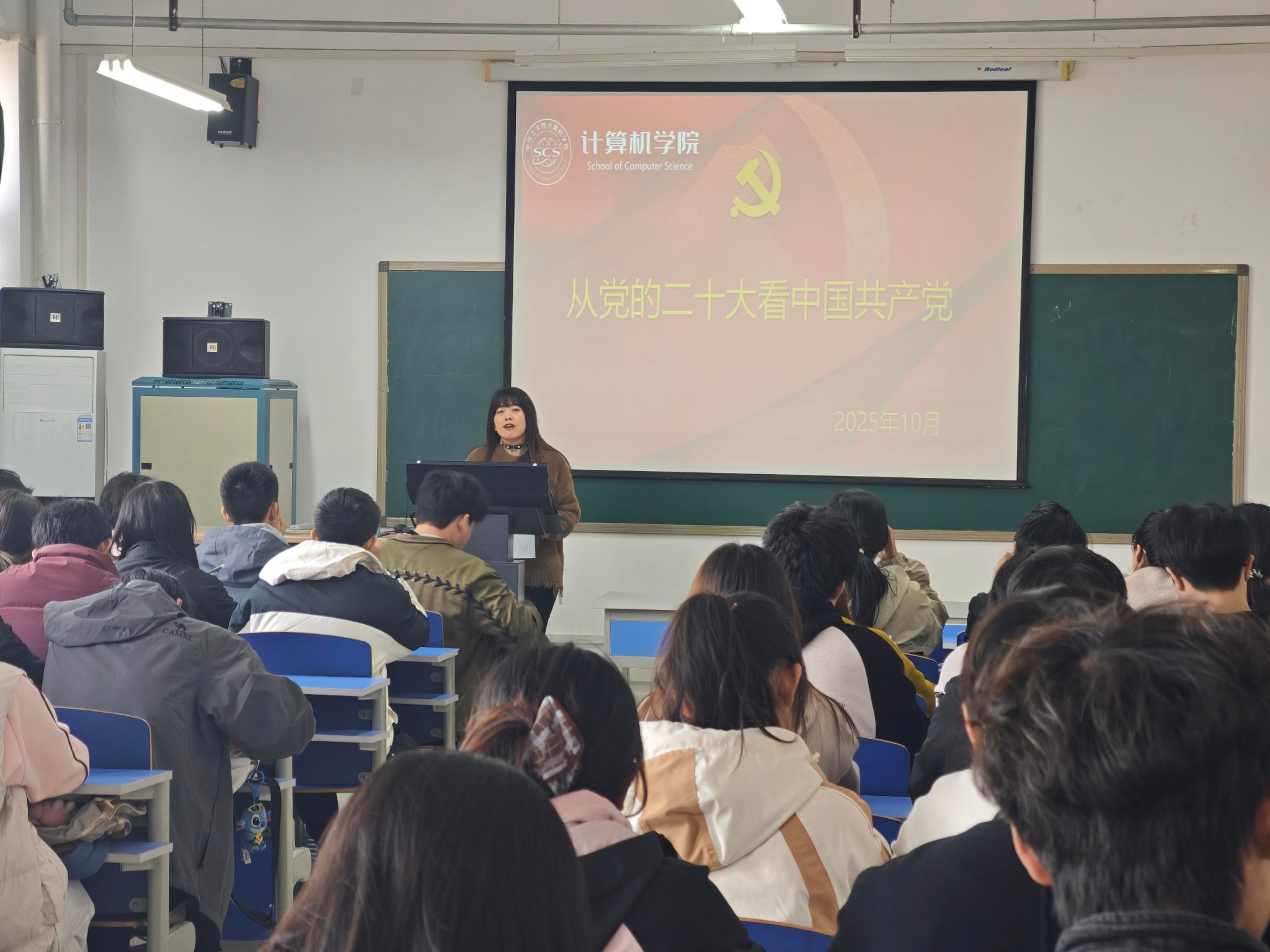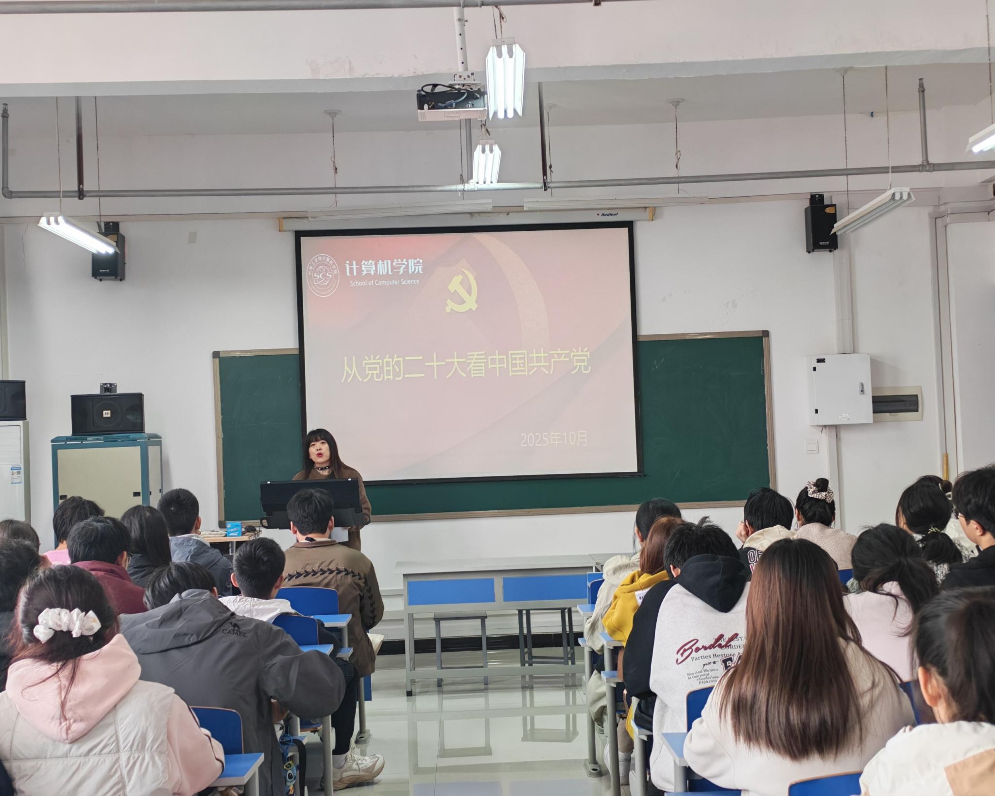 2025年10月30日,YABO鸭脖官网在3号组团楼A908教室举办“研讨交流:从党的二十大看今天的中国共产党”专题党课。本次党课为学院系列党课第五讲,由YABO鸭脖官网于倩静老师主讲。