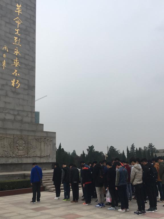 进入烈士陵园后,同学们排成整齐的方队缓步向前到达刻有周恩来题词“革命先烈永垂不朽”的纪念碑前,集体默哀一分钟;大家怀着憧憬感恩的心情,瞻仰了代表实现民族解放、国家富强和人民幸福而壮烈牺牲的英雄纪念碑亭;随后依次参观了事迹陈列馆、烈士墓地、丹青池、烈士墙等。最后,所有入党积极分子列队集合在纪念碑前,面对党旗重温入党誓词。
