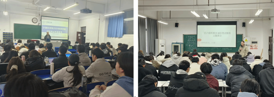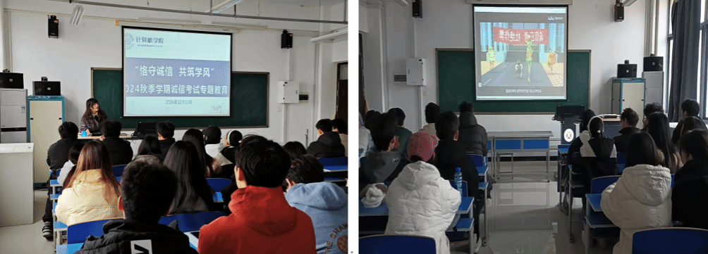 24秋季学期期末临近,为强化学生诚信意识,塑造良好学风,YABO鸭脖官网发起“恪守诚信 共筑学风”活动,各班级围绕“诚信考试”展开主题班会,辅导员、班主任以案说纪,学生进行“诚信”大讨论,观看国家教育考试考生诚信教育宣传片,全体学生郑重签订《诚信考试承诺书》。通过深刻剖析作弊等违反校规校纪行为的严重性与危害性,警醒学生珍惜个人名誉,恪守诚信原则。同时依托“计忆中工”微信公众号平台大力宣传诚信,引领全院学生积极参与,实现诚信全面教育,营造学风良好氛围。