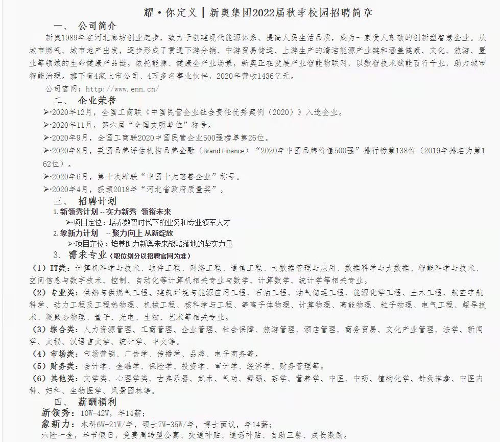 汉威科技、新奥集团招聘