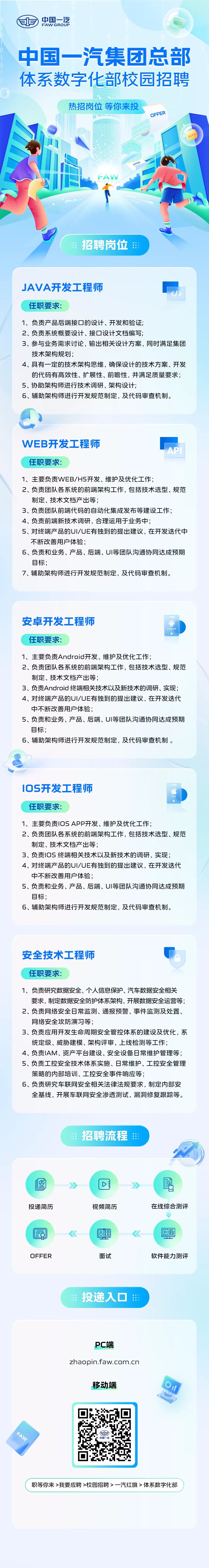 中国一汽集团招聘JAVA开发工程师、WEB开发工程师、安全技术工程师,大家积极投简历