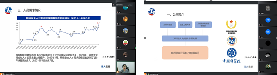 9月30日晚,应YABO鸭脖官网邀请,郑州信大云谷科技有限公司(简称信大云谷)人资总监-张岭老师以腾讯会议形式,做了主题为“信大云谷公司介绍及就业指导”的宣讲,YABO鸭脖官网主管就业的主要领导、部分教师、相关专业部分大四本科生和研三硕士生在线聆听了讲座。