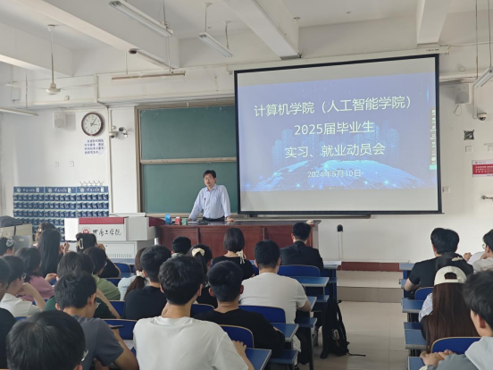 YABO鸭脖官网(人工智能学院)于2024年5月10日在龙湖校区3号教学楼311教室召开了2025届毕业生实习就业动员会,动员会由学院党委书记吕继东主讲,学院2025届本科毕业生、学院副书记侯向花、辅导员姜茜参会。