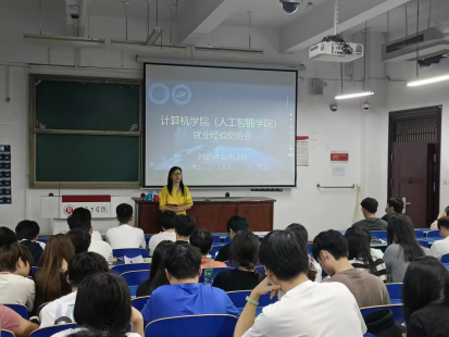 2024年6月18日晚,计算机学院(人工智能学院)在龙湖校区3号教学楼102教室成功举办了就业经验交流会。学院党委副书记侯向花、2024届毕业生代表、2025届全体同学和辅导员共同参会。